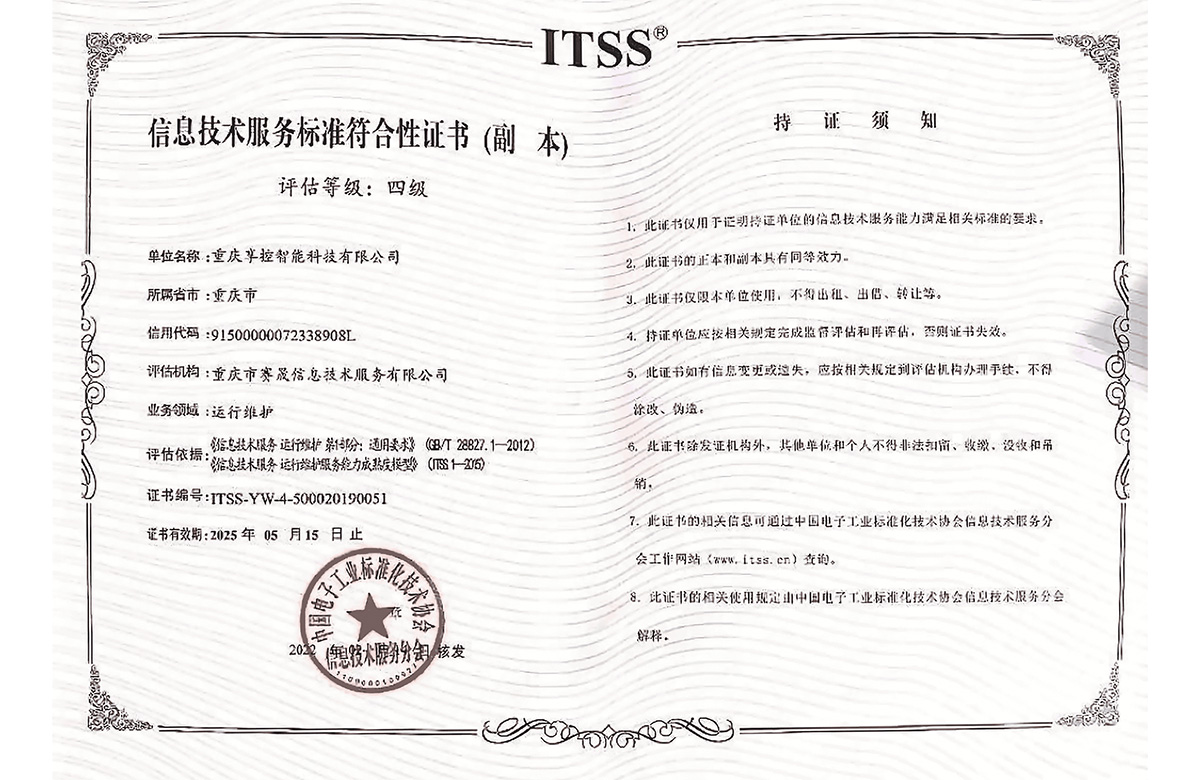 獲信息技術運行維護標準符合性證書